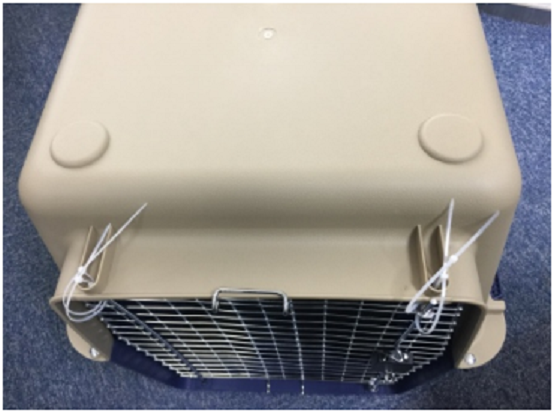 Sie müssen eine Transportbox für Ihr Haustier vorbereiten, die den Anforderungen der Fluggesellschaft entspricht (Abbildung 1), und diese entsprechend sichern (Abbildung 2).